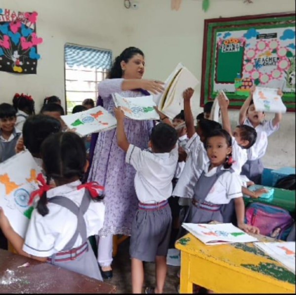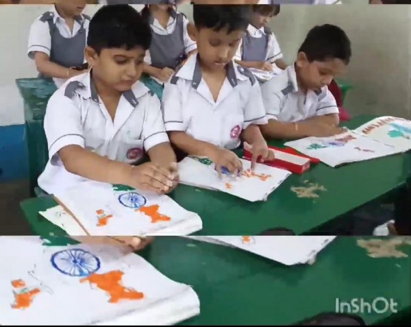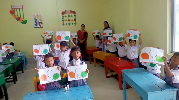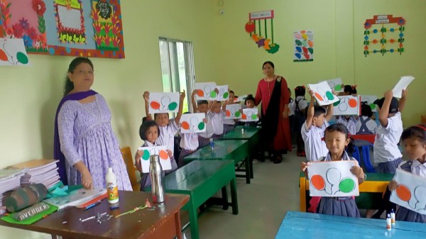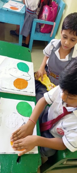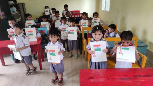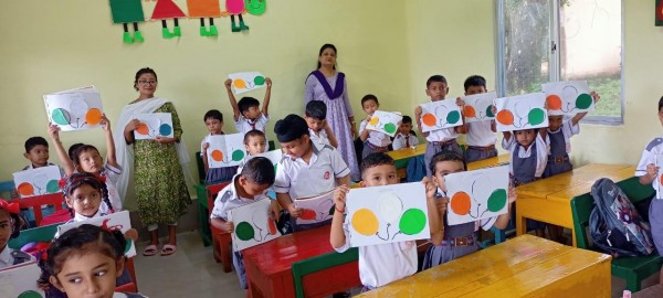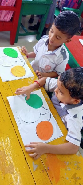 To celebrate Independence Day, Pre-primary students engaged in various class activities such as paper pasting and tearing. Teachers explained the significance of the national flag, including the meaning behind its colors, i.e. saffron, white and green. These activities fostered a sense of nationalism among the children, who enjoyed participating.