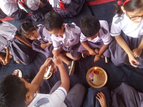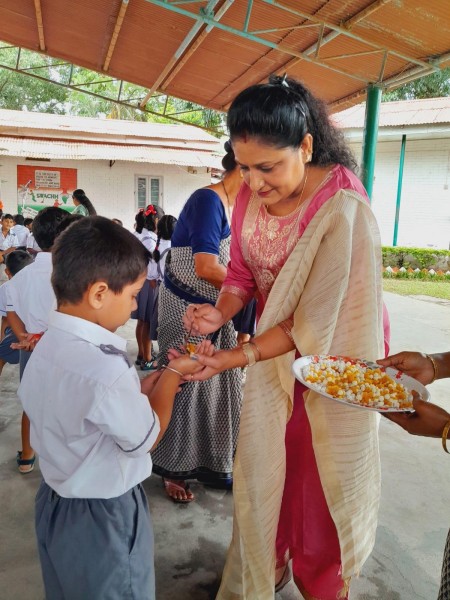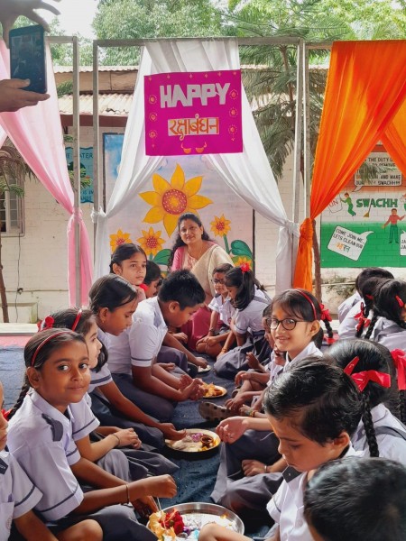 RakshaBandhan or Rakhi is a special occasion to celebrate the virtuous bond of love between a brother and a sister which is one of the deepest and noblest of all human emotions. On 19th August 2024 Raksha Bandhan the auspicious day celebrated at Vartak Model School. Class from Nursery to class V gathered in the assembly area to celebrate ‘Raksha Bandhan’. All the siblings of the school tie rakhi with proper rituals. The event was celebrated with full enthusiasm and zeal. At the end of the celebration chocolates were distributed among the students. The concept of Raksha Bandhan has a much wider concept beyond the raksha of sister by her brother, the mutual commitment of safe-guard, protections, and bonding of us all each other in our family, organisation, our school’s all stake holders and the society.