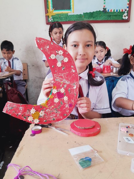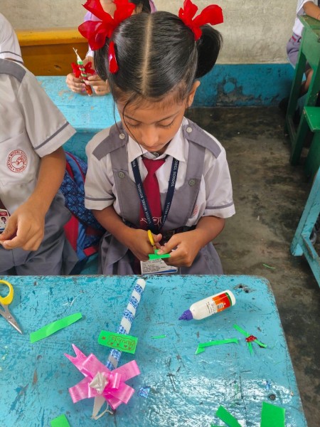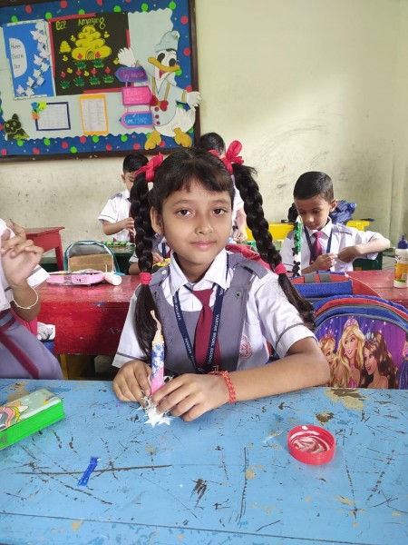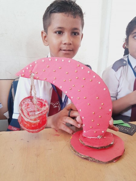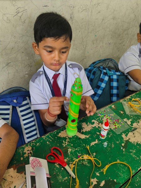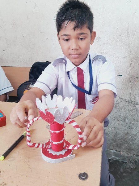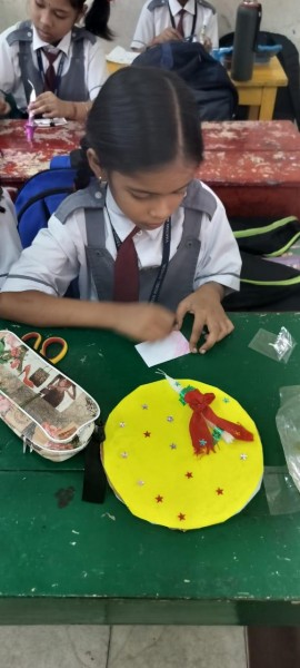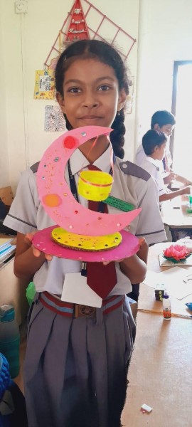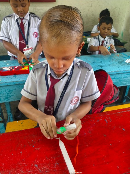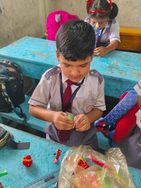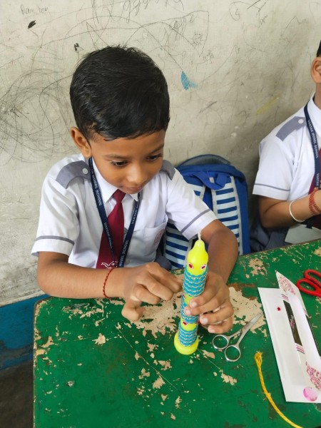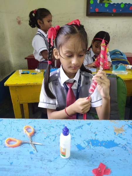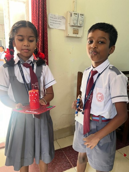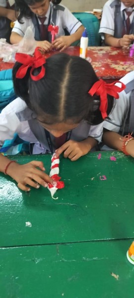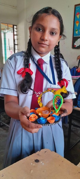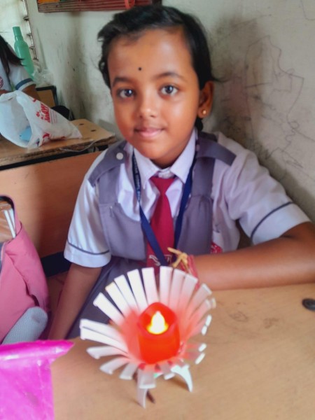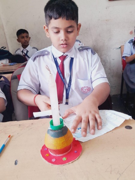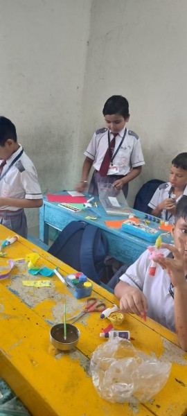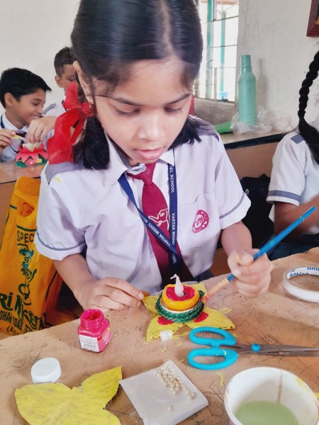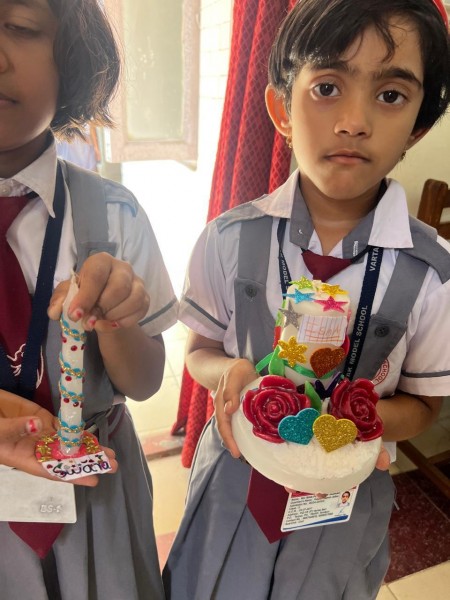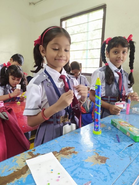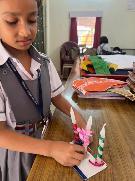 Vartak Model School organized a 'Candle Decoration Competition' for classes 1-3 and a 'Candle Holder Making Competition with Waste Materials' for classes 4-5 on October 29, 2024. The theme of the competition was Diwali. Students enthusiastically participated, decorating candles and candle holders with colored sheets, glitter, and other materials. Principal Mrs. Jonali Talukdar Sarmah commended the students for their creativity and joyful participation.
