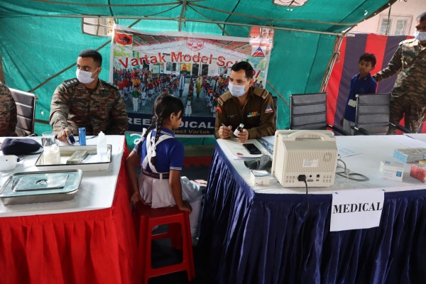 A free health checkup camp was organized at Vartak Model School from February 4th to 6th, 2025, by the CMI room and the 1207 Dental Unit, H/Q CE (P) Vartak, C/O 99 APO, under the direction of Brigadier Sanjeet Singh, Patron of Vartak Model School and Chief Engineer, H Q Project Vartak. The camp aimed to promote wellness among students and staff, offering a comprehensive range of medical examinations and consultations. Qualified healthcare professionals conducted various screenings, including height and weight measurements, blood pressure and pulse checks, dental and eye checkups, and physical examinations. Both students and staff enthusiastically participated, benefiting from the opportunity for early detection of health issues and gaining valuable insights into maintaining a healthy lifestyle. The health check-up camp reaffirmed Vartak Model School's commitment to the well-being of its community. It highlighted the importance of proactive healthcare measures and fostered a culture of holistic wellness within the school. The camp was a resounding success, positively impacting participants and promoting health consciousness within the school community. Doctors provided an overall report on the health of students and teachers, noting their generally good health and offering suggestions for improvement. Student health cards were also provided to parents. The Principal, Mrs. Jonali Talukdar Sarmah, expressed gratitude to the doctors and staff for their time and dedication to the school.