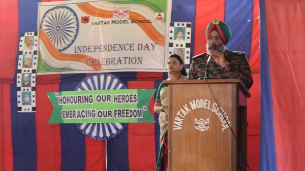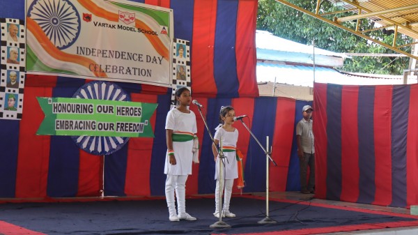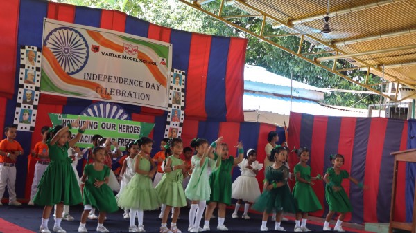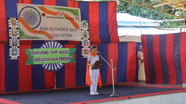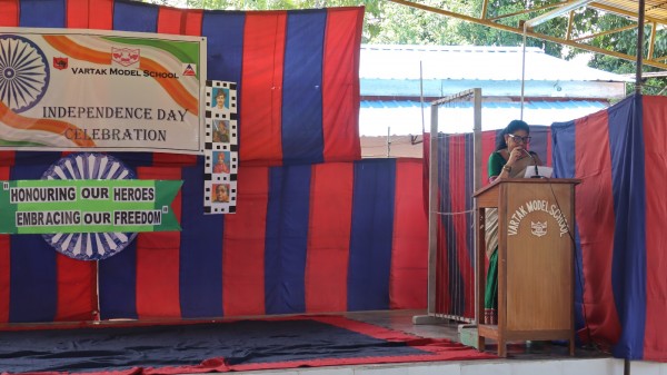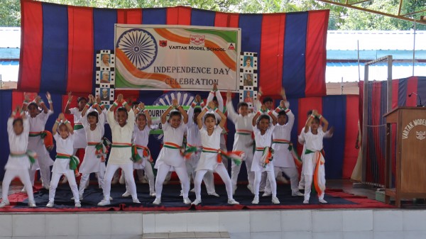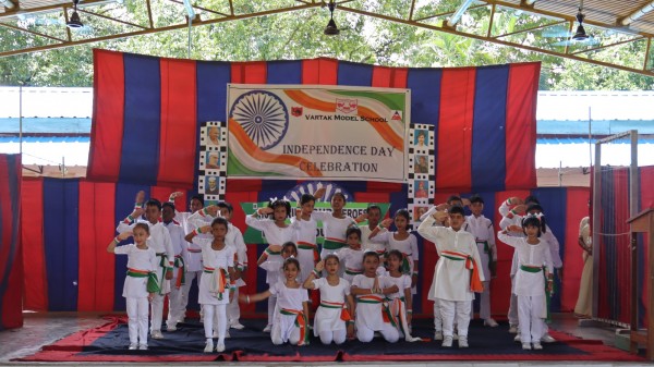 The 79th Independence Day was celebrated with grandeur and patriotic fervor at Vartak Model School. The school was beautifully decorated to create a festive atmosphere. The celebration began with the hoisting of the national flag by the Chief Guest, Brigadier Sanjeet Singh, Chief Engineer, Headquarters, Project Vartak, and Patron of Vartak Model School. This was followed by the singing of the National Anthem. The event was attended by the Chairman of Vartak Model School, Col G.S. Mallan, Director EME, the Secretary of Vartak Model School, Mr. A. P. Shahi, EE, CIV, and other members of the school's management committee. The Chief Guest and other invited dignitaries were warmly welcomed by the Principal and students with bouquets of flowers, tricolor badges, and traditional Assamese gamusas. A Class V student delivered a speech in Hindi, emphasizing the importance of freedom, the sacrifices made by freedom fighters, and the responsibilities of citizens in nation-building. Following the speech, students from various classes, along with some teachers, performed a patriotic song. Students further enhanced the celebratory mood with cultural programs, including dances and a dance drama, which highlighted a strong sense of national pride. The Chief Guest addressed the students, urging them to always do their best and to be proud of their Indian identity. The Principal, Mrs. Jonali Talukdar Sarmah, concluded the formal proceedings with a vote of thanks. The event concluded with the Chief Guest distributing sweets to all students, leaving them with a sense of joy and patriotism. Refreshments were also arranged for the chief guests, committee members, teachers, and invited parents. The entire celebration was a testament to the school's commitment to fostering a sense of national identity and unity among its students.