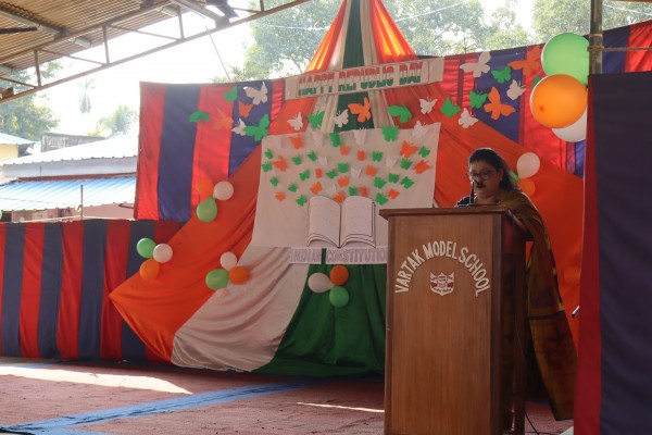 “Our nation is the greatest in the world, but let us strive to make it even better.” The Republic Day celebrations kindle a feeling of patriotism and brotherhood, filling hearts with national pride. Vartak Model School celebrated the 77th Republic Day with great pride and honor. On this day, the school was decorated with tricolor butterflies and balloons. The Principal, teachers, and students left no stone unturned in making this monumental day a memorable one. Brigadier Sanjeet Singh, Chief Engineer, Headquarters, Project Vartak, and Patron of Vartak Model School, graced the ceremony as the Chief Guest. Other members of the school management committee were also invited. They were warmly welcomed by the Principal, Coordinator, and teachers with bouquets of flowers and tricolor badges. Parents were also invited to join the celebration. The ceremony began with the hoisting of the tricolor flag by the Chief Guest, Brig. Sanjeet Singh. The flag hoisting was followed by the National Anthem to pay tribute to the motherland. CULTURAL HIGHLIGHTS A vibrant cultural program was organized on the school premises: Speeches: A Hindi speech on the significance of Republic Day was delivered by a student of Class V. Music: Students from Classes II to V performed a moving patriotic song. Dance: Pre-primary students presented a dance program and sang a patriotic song, followed by a beautiful dance performance by students from Classes I to V. AWARDS AND ADDRESS A prize distribution ceremony was included for the winners of the Intra-Sports Day Celebration, which had been held on January 22nd. The Chief Guest distributed medals and certificates to the winners and later addressed the assembly, urging students to do their best and to take pride in being Indian. The Principal, Mrs. Jonali Talukdar Sarmah, delivered the vote of thanks to the Chief Guest, committee members, teachers, students, and non-teaching staff. To conclude the event, the Chief Guest distributed sweets among the students, and refreshments were served to the guests and staff.