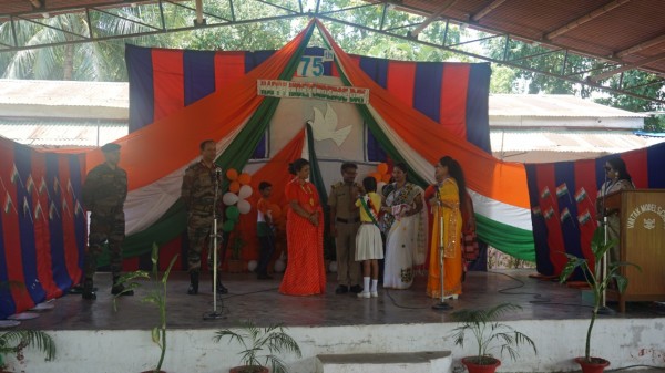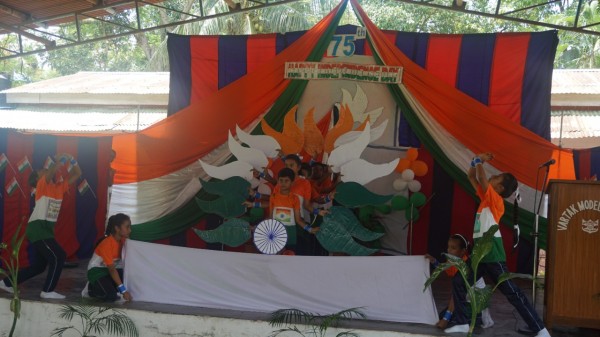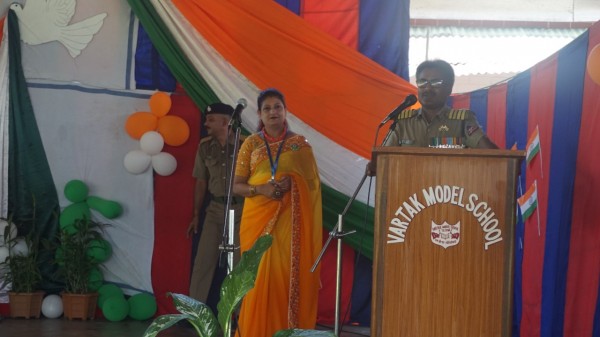 Independence Day Celebration 2022 Like every year, this year also Vartak Model School Celebrated Independence Day on 15th August 2022 with great joy and enthusiasm. The program started at 10:00 am with the welcome of our honourable chief guests respected SE (civil) G P Singh sir, Director, HQ Project Vartak, respected Mrs Seema Singh Ma’am, respected Col. A.K. Bhandari sir, Consultant, Vartak Model School and respected Maj (Dr.) Ayush Sharma sir, Secretary, Vartak Model School. Parents were also invited to the celebration. Our chief guest respected SE (civil) G P Singh sir hoisted the flag at 10:00 am. We all sang our national anthem “Jana Gana Mana” with great pride and patriotism. After the national anthem ended, we welcomed our chief guests with a tricolour badge and Assamese traditional gamusa. After that, a speech on Independence Day, two patriotic group dances followed by a patriotic group song were presented by the students from LKG to Class 5. After the stage performances, our chief guest gave a brief speech on how our students are the future of our nation and should be responsible for their behaviour and what they do to make our country proud. In the end offg. Principal Mrs Jonali Talukdar Sarmah delivered vote of thanks. After the ceremony, refreshments were arranged for the chief guests and teachers. Sweet (gulab jamun) were distributed among the students, parents and non-teaching staff of Vartak Model School which was provided by our Patron Brig Harish Kumar sir, HQ Project Vartak. Few competitions and activities were also organised before 15th August to celebrate 75th Independence Day. They are mentioned below : Inter-house patriotic group song competition (Primary classes) Flag making activity (Pre-Primary) Drawing competition (Class I & II) Poem Recitation Competition (Class III & IV) Essay writing competition (Class V)
