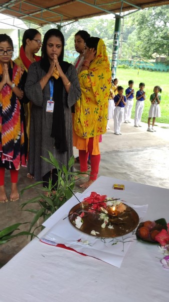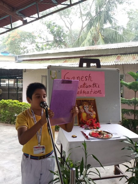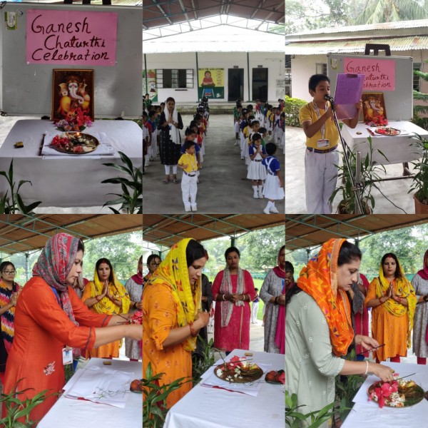 Report on Ganesh Chaturthi “May the high spirits of Ganesh Chaturthi stay with us forever just like the blessings of Ganapati Bappa”. “Ganesh Chaturthi” was celebrated on 31st August 2022 at our school premises. Students, teachers and staff of our School welcomed Lord Ganesh by installing an idol of Lord Ganesha . The arrangement of puja and decoration of our school was well managed. Offg.Principal illuminated the lamp. Teachers and students sang Ganesh Vandana and prayers. Lastly prasad were distributed among all.