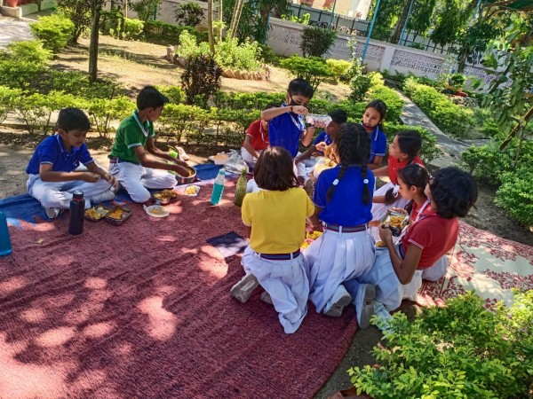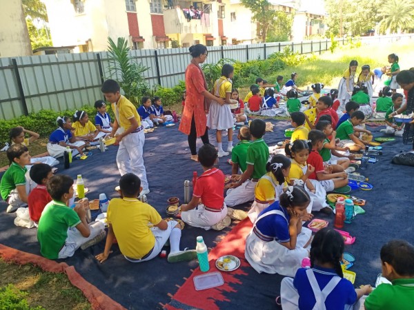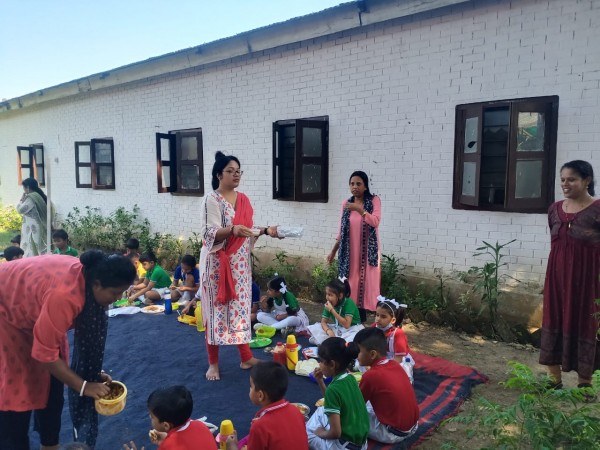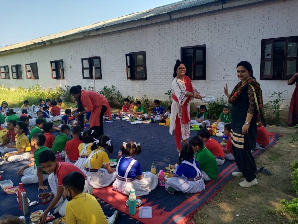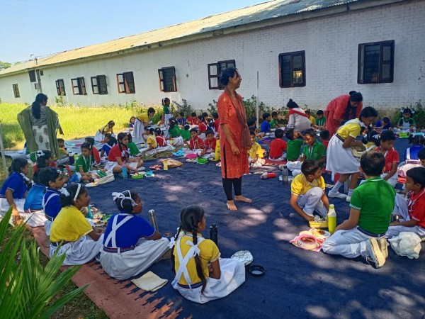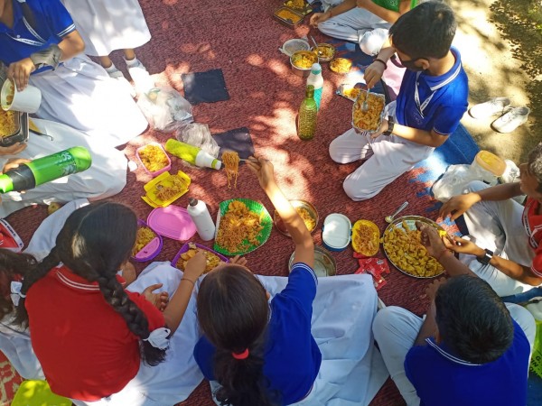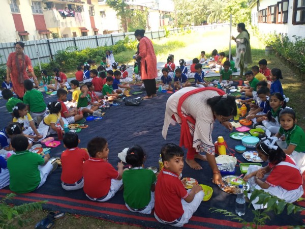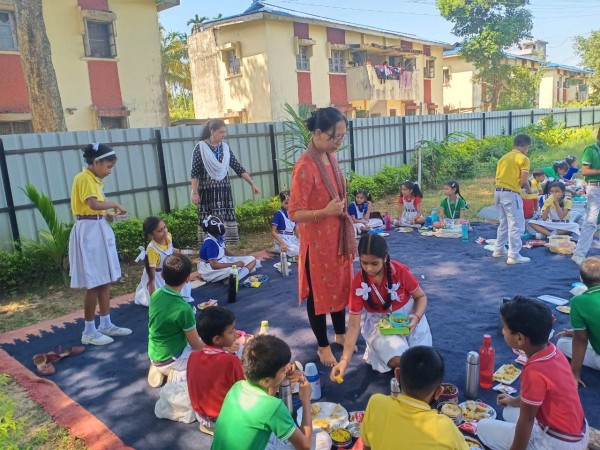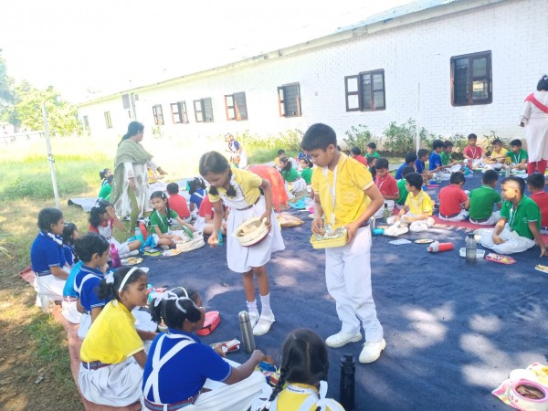 COMMUNITY LUNCH PROGRAM :- Community lunch is a weekly program designed to share the lunch meal to encourage the people of the community. This year, our school conducted a “community lunch” on 1st October 2022, Saturday, that was the last working day before Autumn Break. Offg. Principal made an arrangement outside the classroom under the tree where children were seated. They bought different types of food from home in their lunch box and shared the lunch with their fellow students. Teachers helped in distributing the lunch. It was like a mini picnic. Children enjoyed very much. This program was organized to introduce kids to new foods. The offg. Principal Mrs Jonali Talukdar Sarmah told that sharing a meal like this is an excellent way for the kids to feel a sense of communal harmony. And it’s also a great way to introduce kids to new foods. Apparently they will eat things at school, among their friends, which will lead to developing the activity of sharing.