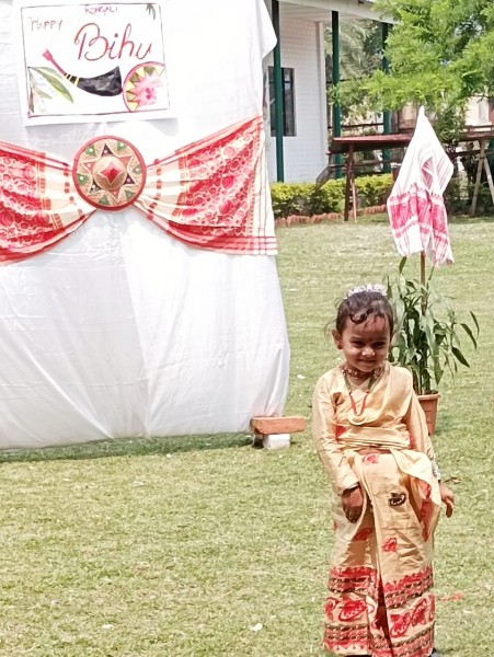 Bohag Bihu is one of the major festivals of Assam commonly known as Rongali Bihu. It is celebrated in Assam during the month of April. It is the most popular Bihu which celebrates the onset of Assamese New year (around April 15) and the coming of spring. This marks the first day of the Hindu Solar calendar. On the eve of Rongali Bihu a competition was organised on Vartak Model School on 13th April 2023 under the supervision of the Principal Mrs JonaliTalukdar Sarmah. Many student from Class Nursery to Class V participated in the competition. Teachers dressed in traditional Assamese attire performed Bihu dance. The Principal also sang a melodious Bihu song which add adorn in the program. A festive and joyous atmosphere prevailed in the School premises.