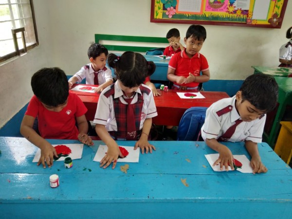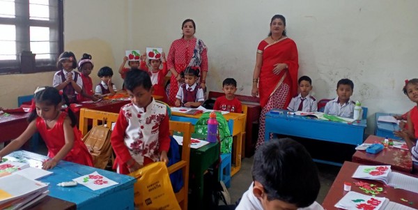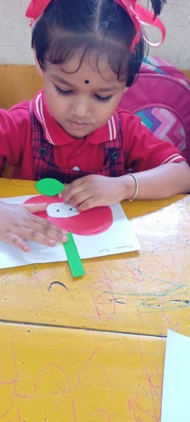 “ The colour of love and smiles illuminates the air with energy, vigour and exuberance..” Vartak Model School celebrated the Red colour day on 4thMay (Thursday) 2023. All the tiny tots of pre primary had dressed up beautifully in Red colour clothes. Teachers were also dressed up in red colour clothes. To heighten the feeling ofjoy and good cheer some activities related to Red colour was introduced like paper pasting, paper mosaic and thumb painting. A selfie corner was also there where students posed for photographs. All the children participated and everyone was very happy. A Rhymes video was prepared by introducing the colour of love – Red colour.The studentswere veryamused and very happy seeing the video. At the end of the day the Principal Mrs. Jonali Talukdar Sarmah provided students with insight into the purpose of Red colour day celebration .