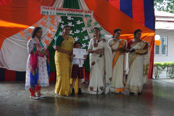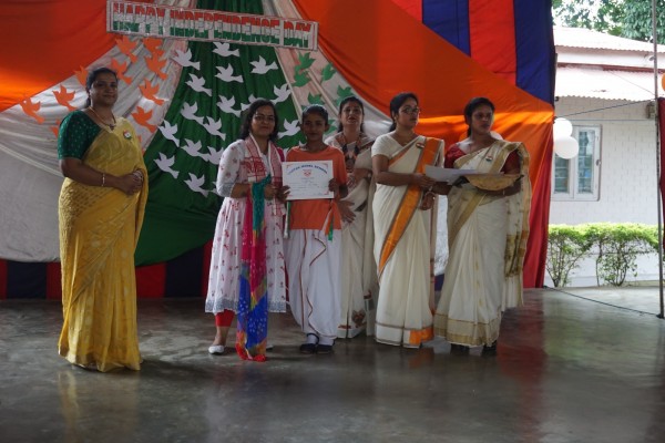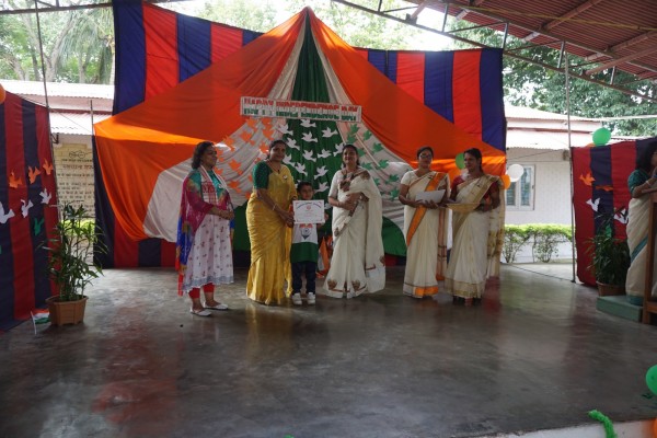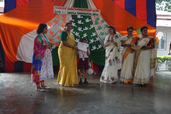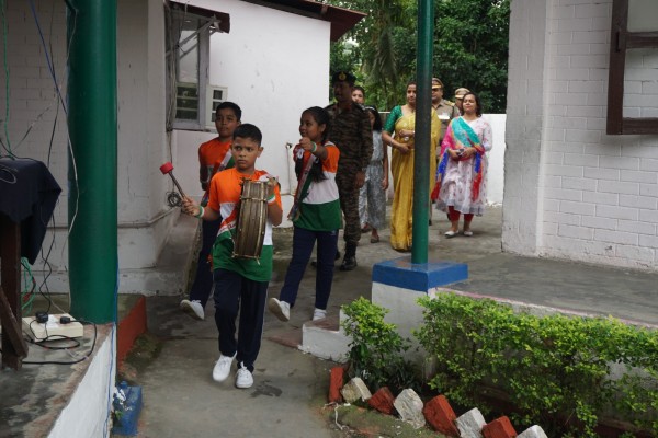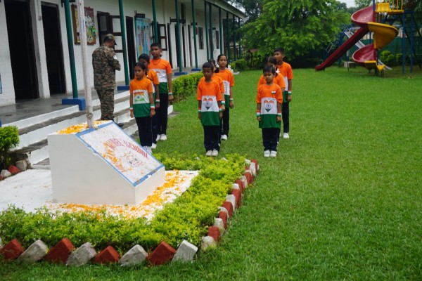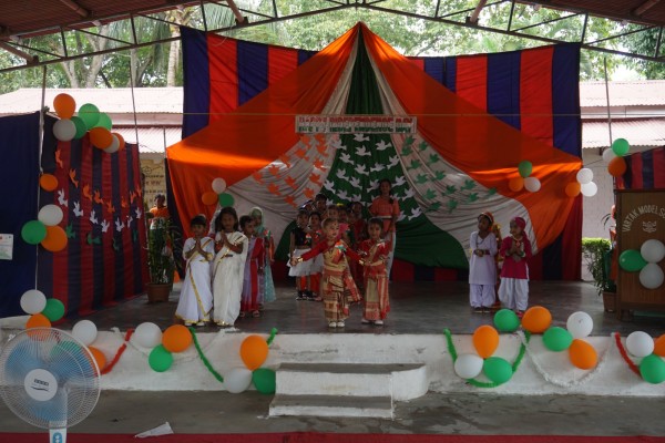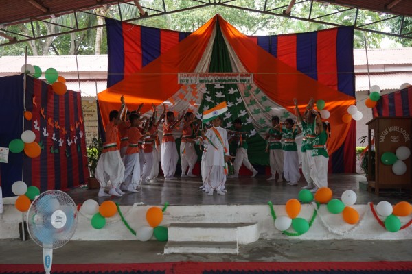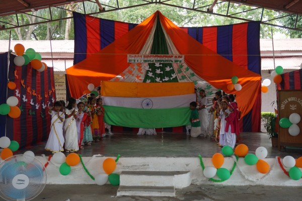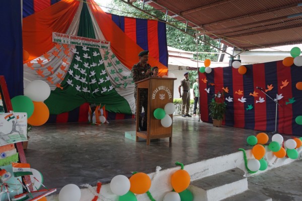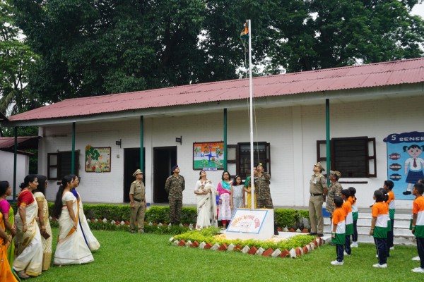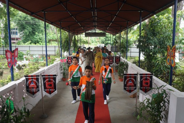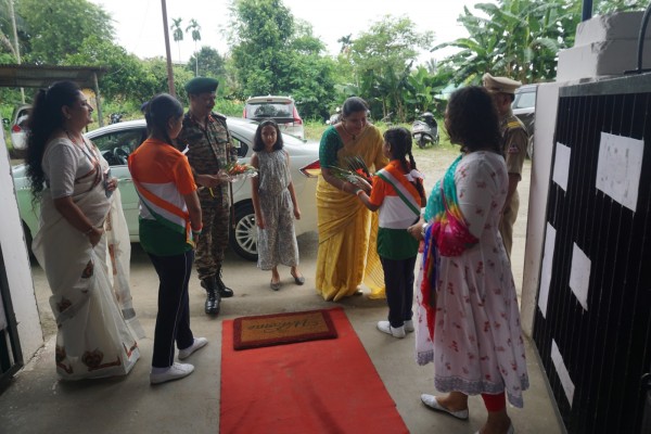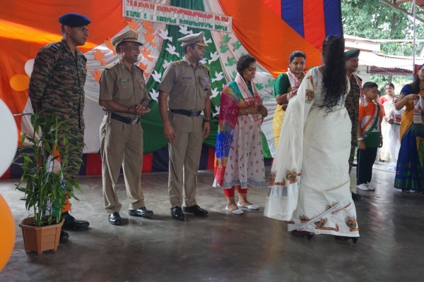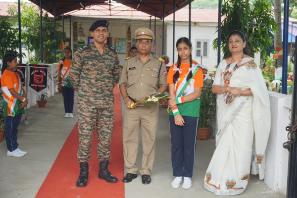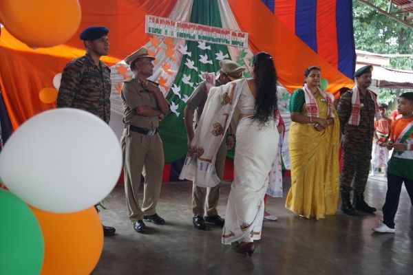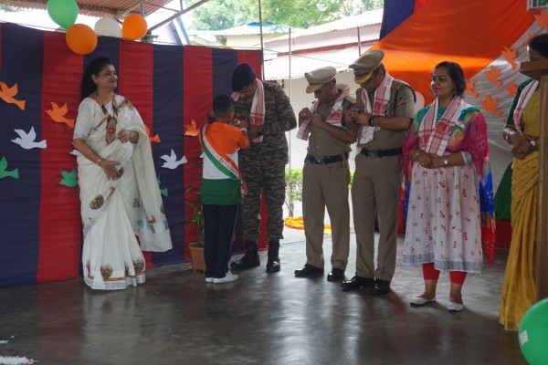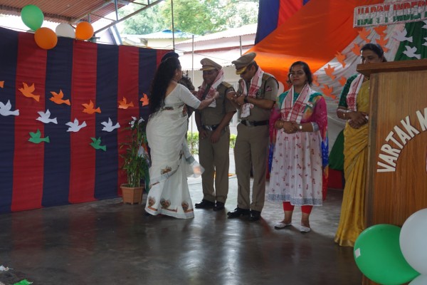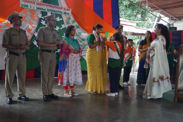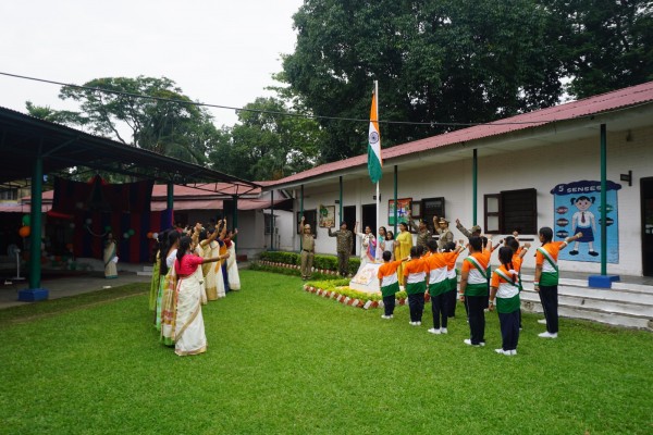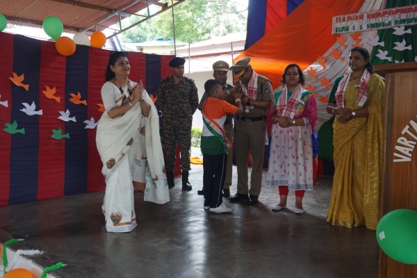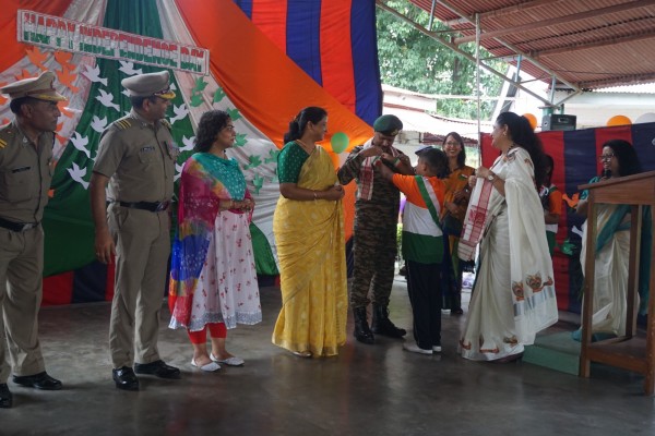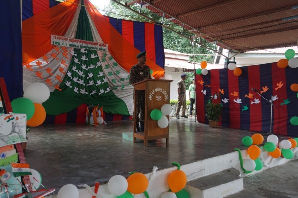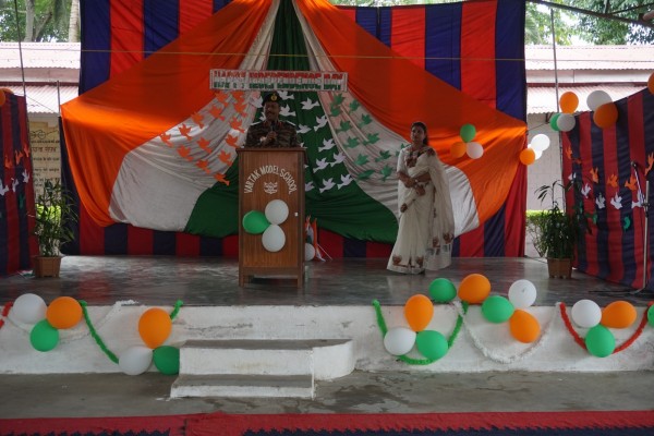 “Our unity is our strength and diversity is our power” The 77th Independence day was celebrated with great joy at Vartak Model School on 15th August 2023. On this day the school campus was nicely decorated with tricolour balloons and flags. Students came to school in clean uniform. The program started at 9:25 a.m. with the welcome of the honourable chief guest respected Brigadier Raman Kumar S V Sir, Chief Engineer, Head Quarter Project Vartak, Patron, Vartak Model School, respected Mrs G S Anitha Ma’am, Chairperson, Vartak Model School, respected AP Shahi Sir, Executive Engineer, (Civil), Consultant, Vartak Model School, respected Mrs Sonal Shahi Ma’am, respected Major (Dr.) Ayush Sharma Sir, Officiating DADMS, Secretary, Vartak Model School and respected Mr. DK Das Sir, Camp Commandant. Parents were also invited to the celebration. In the presence of a gleeful gathering the chief guest respected Brigadier Raman Kumar S V Sir hoisted the National Flag at 9:30 a.m. All sang the national anthem “Jana Gana Mana” with great pride and patriotism. After the national anthem the chief guests were welcomed with a tricolour badge and Assamese traditional gamusa. After that a speech on Independence day was given by one of the student from class 4. A patriotic group dance was performed by the tiny tots from the pre primary section. A patriotic group song were presented by the primary students. A patriotic group dance was also performed by the students from class 1 to class 5. After the stage performances, Chairperson of Vartak Model School, Mrs G S Anitha Ma’am was invited on the stage to distribute certificates of merit to the students. After that the chief guest Brigadier Raman Kumar S V Sir was requested to speak a few words on the stage. Patron Sir delivered a motivational speech. He told students about the significance of tricolour of Indian flag. He also said that the freedom was very precious and was very necessary to preserve it. At the end Principal Mrs Jonali Talukdar Sarmah delivered vote of thanks. Refreshments were also arranged for the chief guest and teachers. Sweet (laddu) and samosa were distributed among the students, parents and non teaching staff which was provided by the Patron of Vartak Model School, Brigadier Raman Kumar S V Sir, Head Quarter Project Vartak.