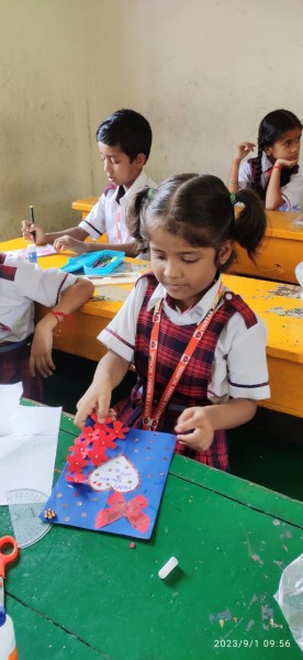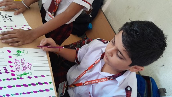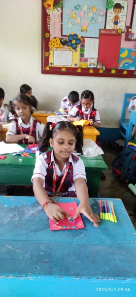 Art allows kids to develop their creativity which is important throughout their lives. While doing something creative, you allow for self -expression and this let the students to express their feelings.It also fosters mental growth in students by providing opportunities for trying out new ideas, new ways of thinking and problem- solving. A blender of expectation, creativity and imagination was displayed by the students form class 1 to 5 during ‘The Teachers Day Card Making Activity’ held on 1st of September 2023 in the primary wing at Vartak Model School. Children participated with great enthusiasm and zeal.It was a wonderful sight to witness the creations of children who with their nimble fingers weave magic on paper. The competition aimed at promoting creativity and self - expression among students. During this activity Principal Mrs Jonali Talukdar Sarmah also visited all the classes and appreciated all the students for their efforts and encourage them to keep up the good work always.