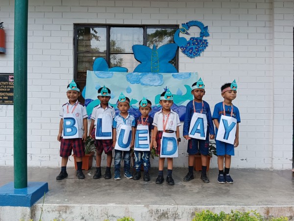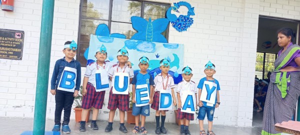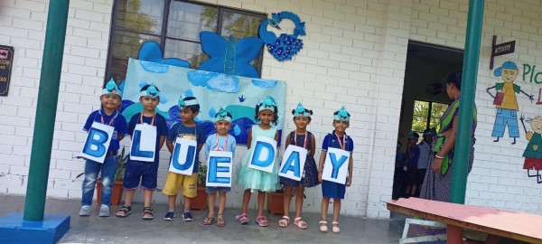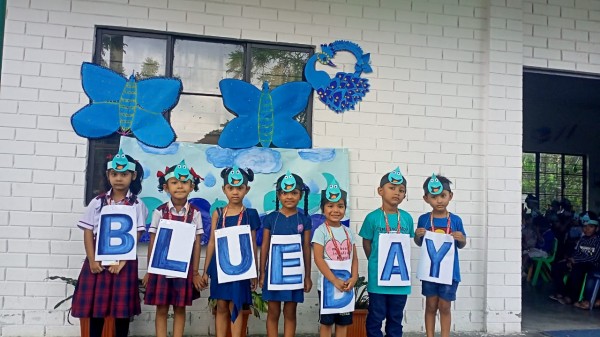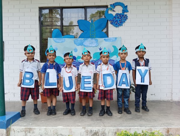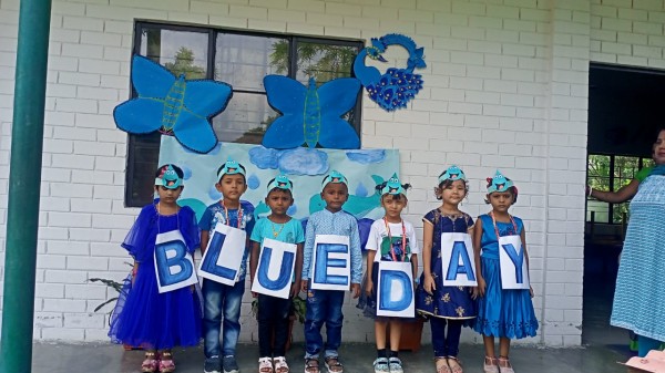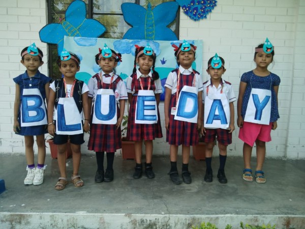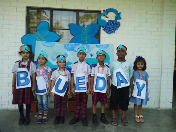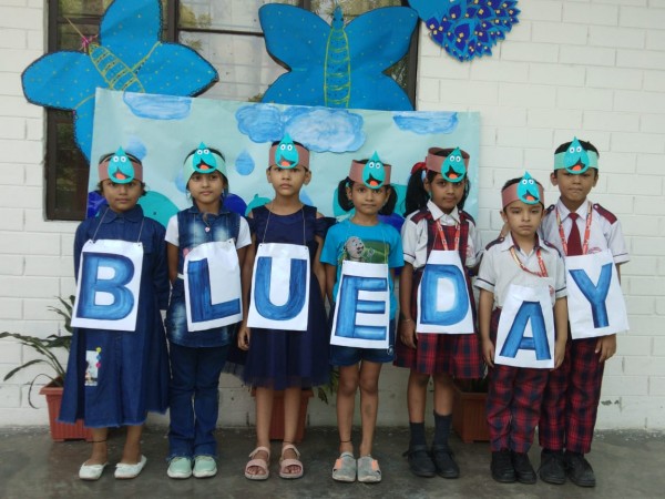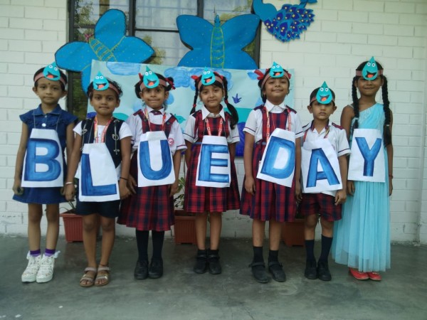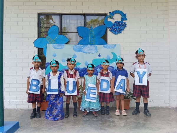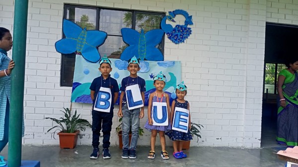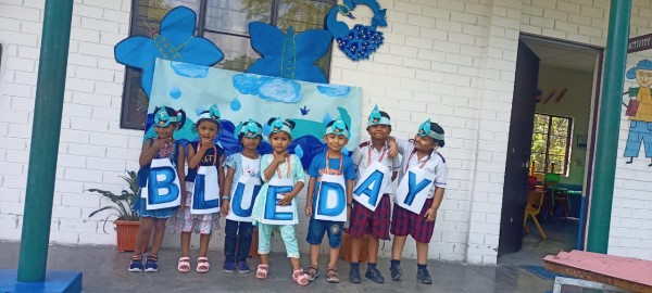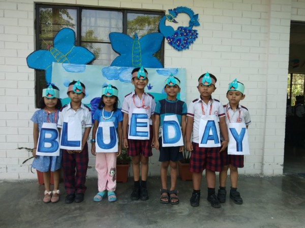 Blue is the colour of the sky and sea. It is often associated with depth and stability. Blue symbolizes trust, loyalty, wisdom, confidence, intelligence and truth. The students of pre primary classes celebrated ‘Blue Day’ on Monday, 9th October 2023 with great zeal. The significance of blue colour was reiterated through a series of activities. Excitement and enthusiasm was visible everywhere. The little ones of Nursery made a peacock through paper folding, L. K.G made a blue whale through ear bud impression and U.K.G made a scenery though sponge dubbing. All the students including teachers came dressed in blue. Children also brought different objects like toys, decorative items, etc. To make the activity more inclusive, a Rhymes video was prepared by introducing the colour of sky – Blue colour. Blue Day was an amazing learning experience which had a long-lasting effect on every student. Children enjoyed the activities with immense enthusiasm and zeal.