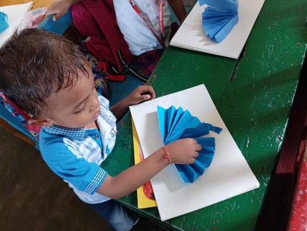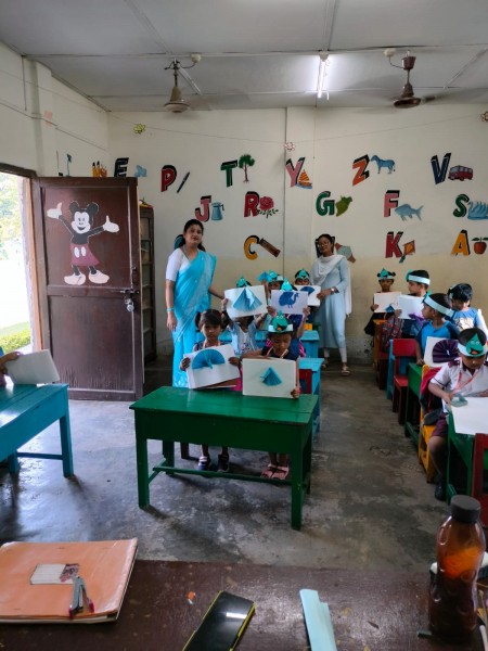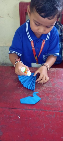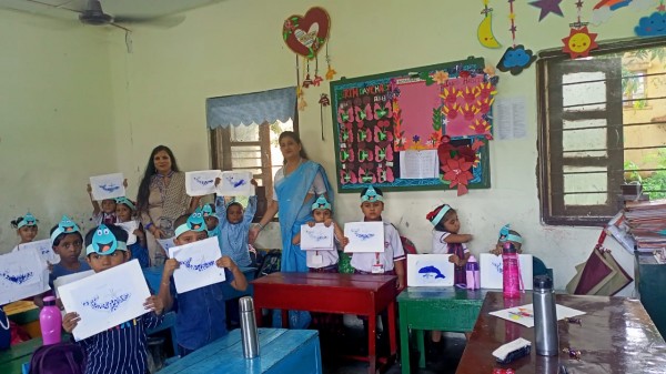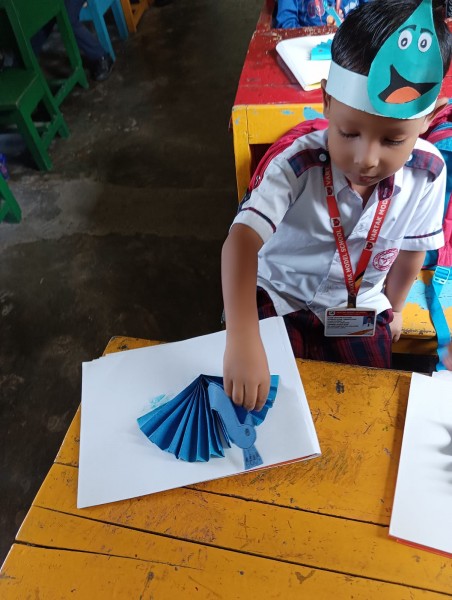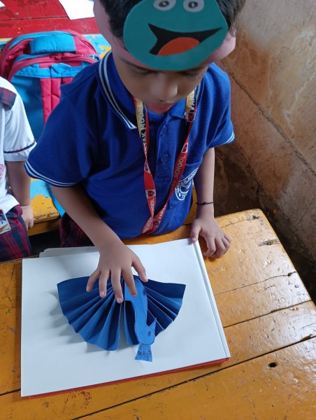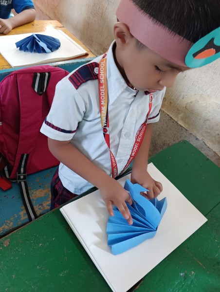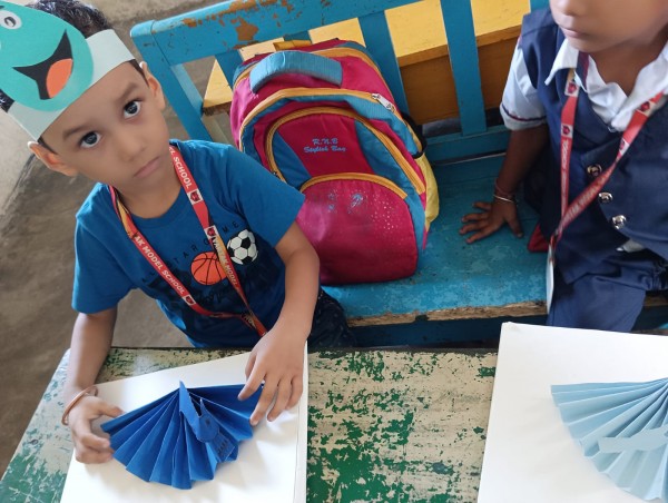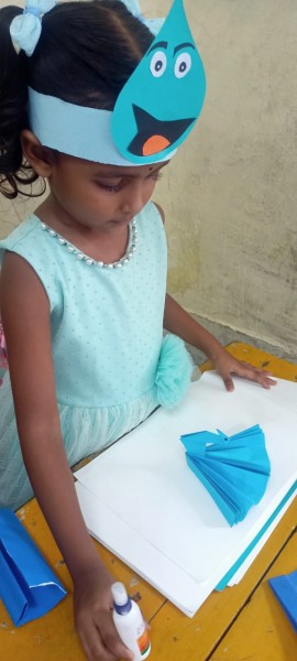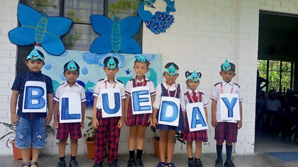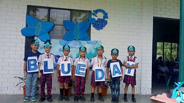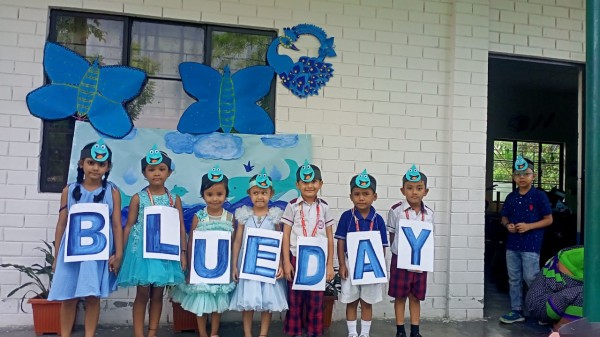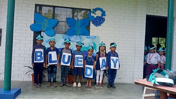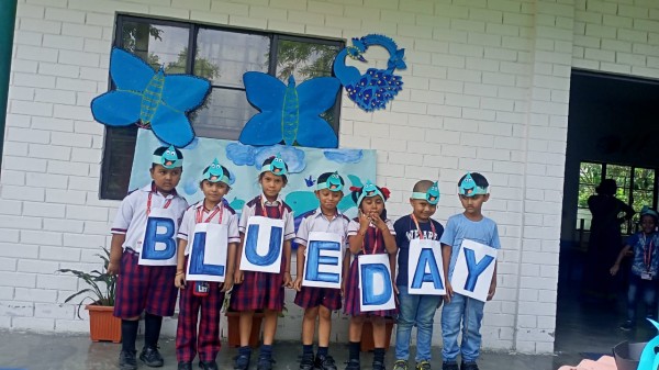 Blue is the colour of the sky and sea. It is often associated with depth and stability. Blue symbolizes trust, loyalty, wisdom, confidence, intelligence and truth. The students of pre primary classes celebrated ‘Blue Day’ on Monday, 9th October 2023 with great zeal. The significance of blue colour was reiterated through a series of activities. Excitement and enthusiasm was visible everywhere. The little ones of Nursery made a peacock through paper folding, L. K.G made a blue whale through ear bud impression and U.K.G made a scenery though sponge dubbing. All the students including teachers came dressed in blue. Children also brought different objects like toys, decorative items, etc. To make the activity more inclusive, a Rhymes video was prepared by introducing the colour of sky – Blue colour. Blue Day was an amazing learning experience which had a long-lasting effect on every student. Children enjoyed the activities with immense enthusiasm and zeal.