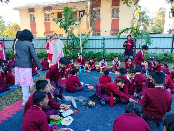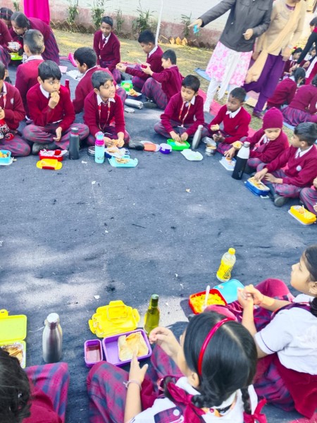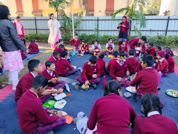 Food is the nutrient that binds us together. A nutritious, delicious community lunch was organized for the primary students on 22nd December 2023 at Vartak Model School. The main purpose of organizing this programme is one should not have the difference among themselves like caste, creed or religion. The lunch was prepared by their parents at home and the students brought it to school. All the students shared food with their own classmates. They inculcated the value of sharing and caring. It was an amazing experience - 'Joy of Sharing'.