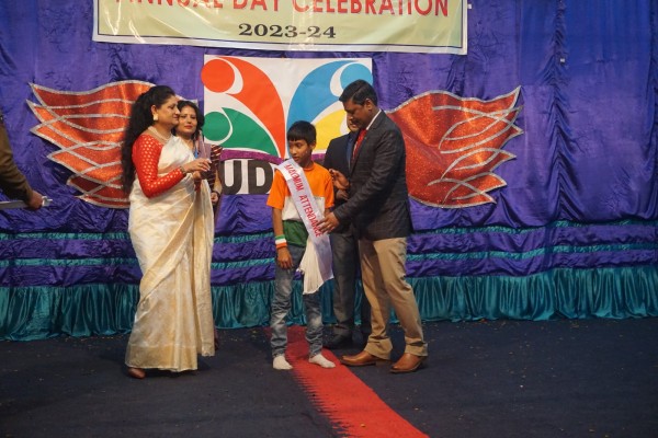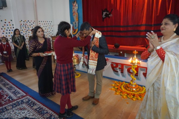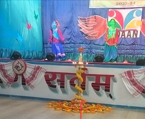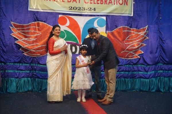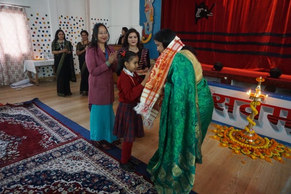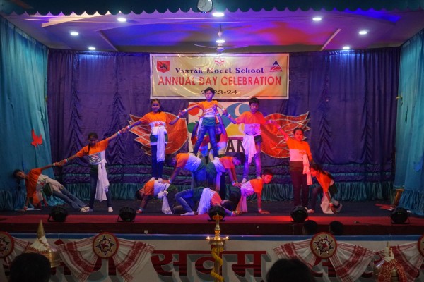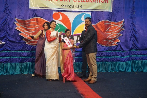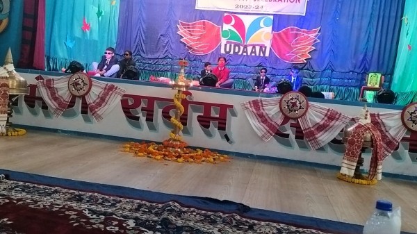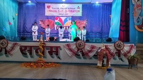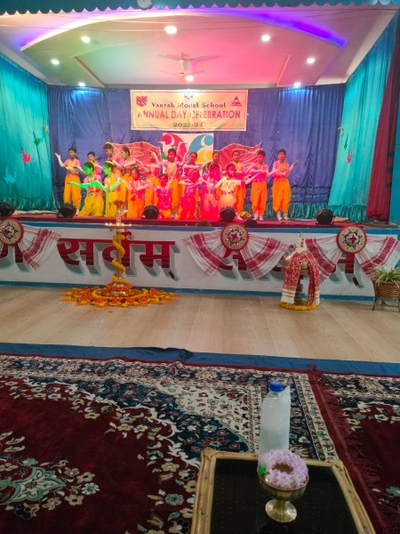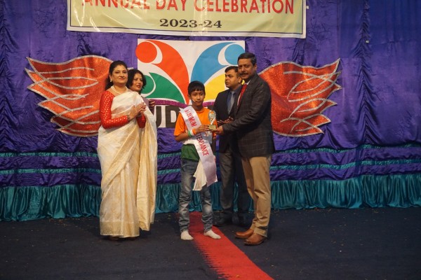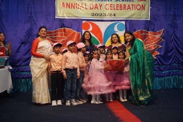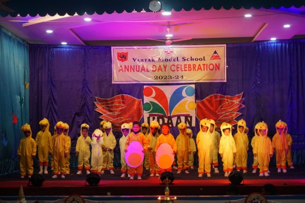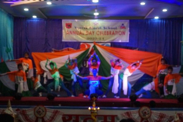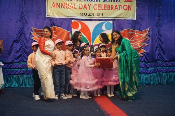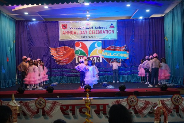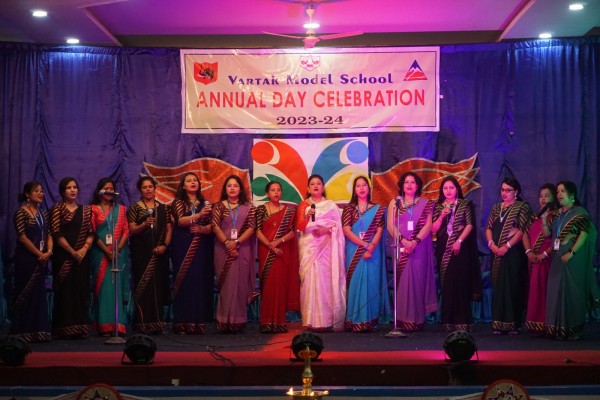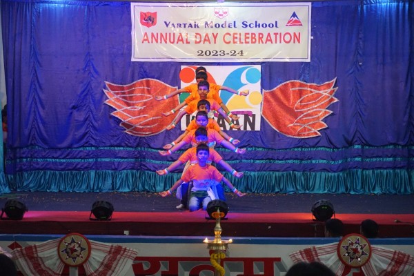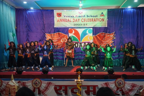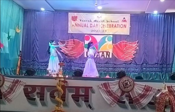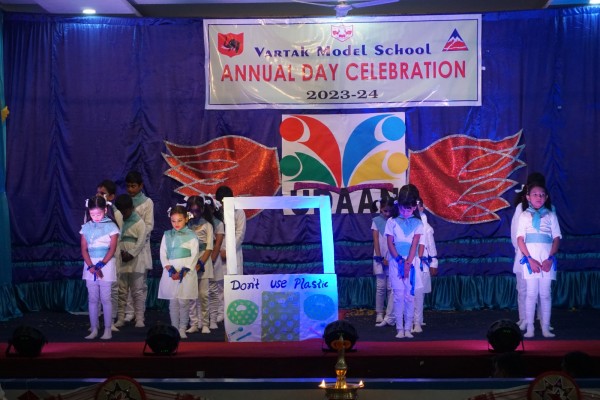 Vartak Model School celebrated Annual day on 3rd February 2024 at Mani Bhawan.The Stage and the function premises were beautifully decorated specifying the theme of the function, which resembled the name “Udaan”. Brigadier Raman Kumar SV,Chief Engineer , Patron, Vartak Model School,and Mrs GS Anitha, Hony Director, Vartak Model School were Welcomed as the Chief Guests of the Annual Day celebration of the School. Along with them, other dignitaries and committee members of the school were also present at the function. Parents of all the students were invited to the Annual function. The chief guest were welcome with a traditional Assamese gamusa by the students.The momentous occasion commenced with the lighting of the ceremonial lamp by the chief Guest . After that the principal Mrs JonaliTalukdar Sharma presented the school report highlighting the achievements of the school in various domains. Over 165 students from pre-primary and primary classes participated in the cultural programme which began with a Ganesh/Saraswati/Krishna Vandana. Following that, one after the other, there were marvellous dance performances from the students, from classes Nursery to 5. After that, adding flavor to the function, there was a group song performed by the teachers. As the function came to an end, there was a patriotic dance performance. It was simply amazing, and all the pieces of efforts taken by the students paid off, resulting in loud applause from everyone on the premises. Mrs G S Anitha, Hony Director ,distributed prizes to the performer and Brig Raman Kumar SV,Patron distribute prizes to Maximum attendance,the best performers and also to the Best House of the year and BestHouse in Sports trophy to the students along with teachers.Both the trophy were won by Red Roses. He also praised the school for its dedicated service to education and the efforts made by our school in preparing the students for the annual day function in very short span.After this, the co ordinator Mrs Mridusmita Borah thanked all the Chief Guests, management committee and other dignitariesfor giving their valuable time for the School function.She also addressed all the students and their parents, congratulating each and everyone from the school, for every effort taken to make this function successful. The function closed with the singing of the National Anthem. The celebration ended after a high tea and refreshment were served to the students and parents.